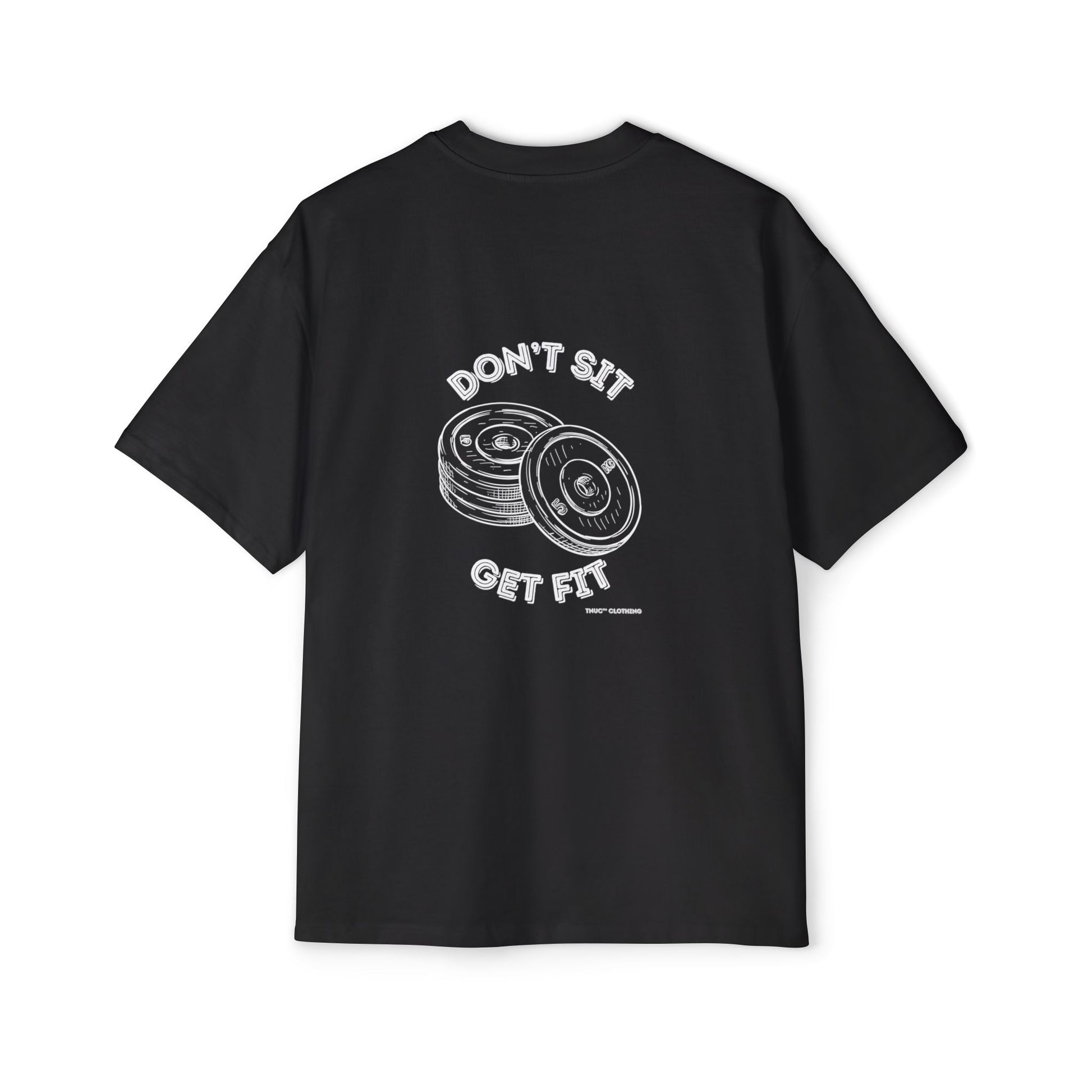Men's Heavy Oversized Tee - "Don't Sit Get Fit" Fitness Motivation Shirt