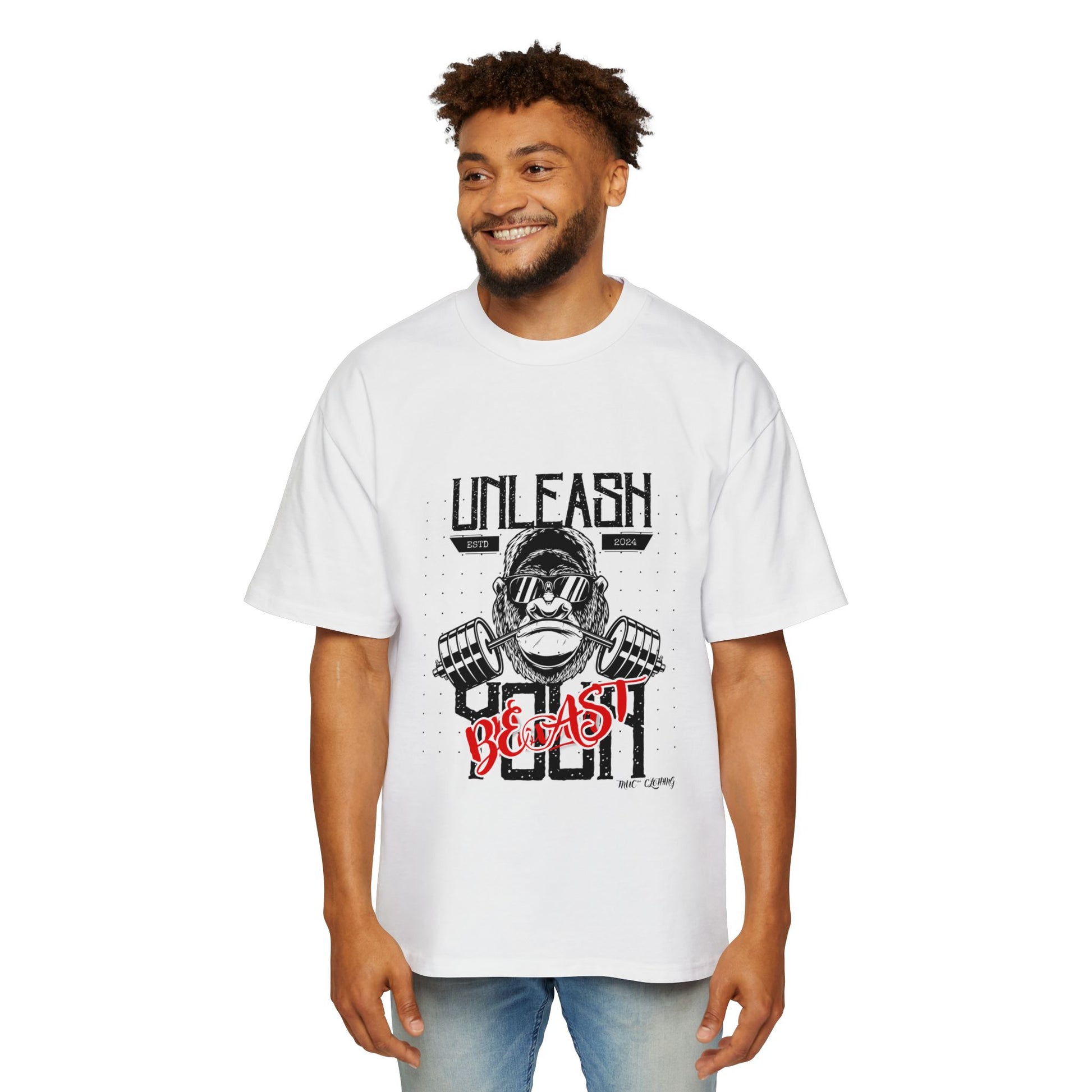 Men's Heavy Oversized Tee - Unleash the Beast Fitness Shirt